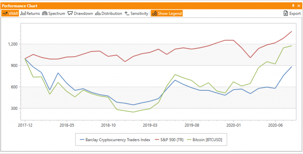 In April last year we created an index-like portfolio of major cryptocurrencies; it was constructed using the five coins with the highest market cap each year (measured by year-end) and then held for one year). This approach has shown interesting results over more than seven years of analysis, basically doubling the return of Bitcoin alone and outperforming equities.