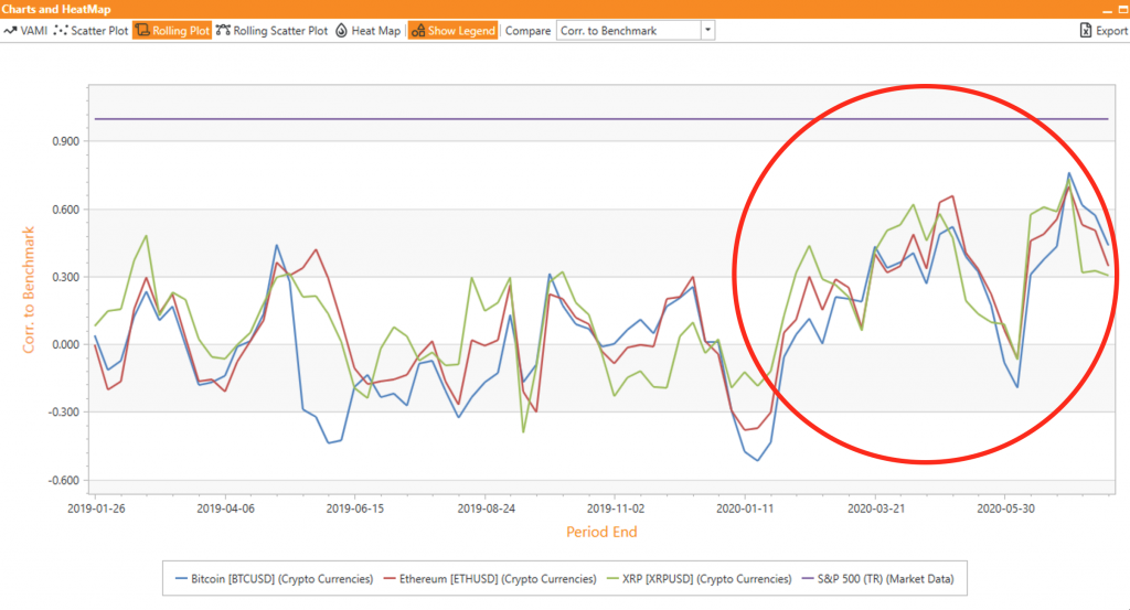 There is a noticeable and unprecedented trend of increasing correlations between crypto and equity markets.
