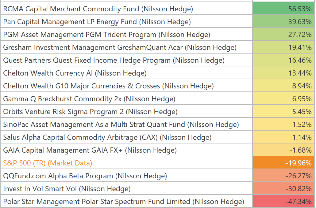 Commodities have traditionally been an inflation hedge, and with growing concerns over rising prices expressed by many, including yours truly, we wanted to take a look at how managed futures strategies are doing in the current environment.