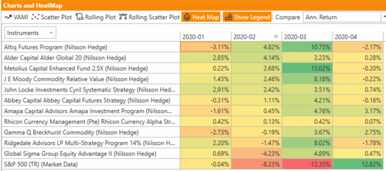 We repeat our filtering to find CTAs that are performing well YTD through April by using Nilsson Hedge database.
